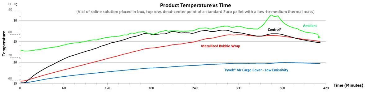Las fundas Air Cargo Covers de Tyvek® reducen sustancialmente la temperatura máxima y aumentan los tiempos en la pista del aeropuerto durante interrupciones de la cadena de frío.